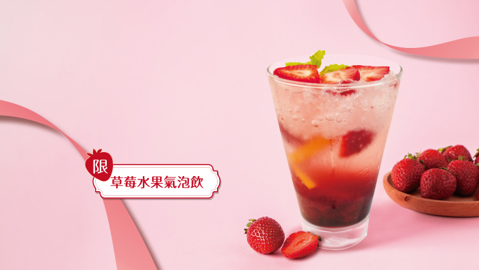 而季節限定飲品同樣以鮮嫩多汁的大湖草莓所製,透過獨家研發的自製草莓醬為基底,融入石榴與萊姆的天然果感香氣,入口酸甜清爽、層次鮮明,此外還能吃的到新鮮草莓的果粒!想盡情沈浸在鮮甜的草莓果香裡,絕對不要錯過此款草莓限定飲品「草莓水果氣泡飲」!